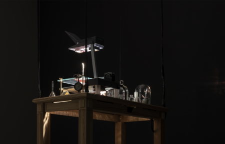 Авторы обращаются к практике метеорологических наблюдений, превращая научные графики, визуализации и данные в метафорический язык, который одновременно демонстрирует и проблематизирует научное знание. Инсталляция состоит из двух слоев: абстрактных проекций, напоминающих аналитические диаграммы, и «линии времени» — ряда столов с отобранными объектами-артефактами, создающими символический архив разных эпох отношения человека к среде. Важной частью проекта выступает и сформированная художниками книжная коллекция, объединяющая научные, философские и художественные тексты об атмосфере, погоде и наблюдении.