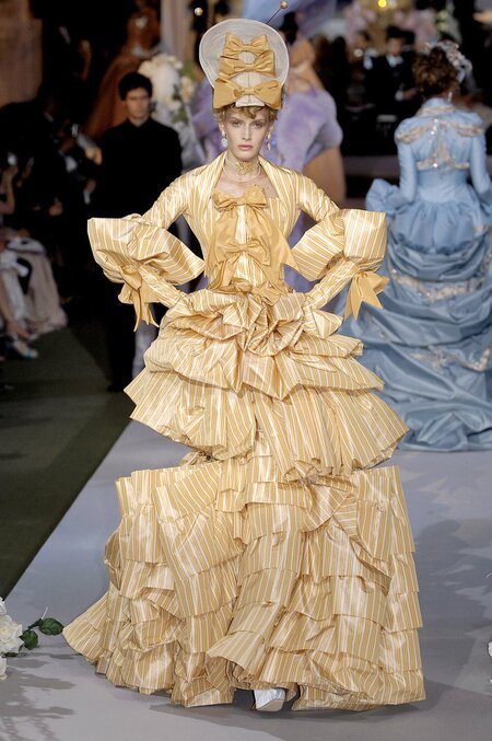Многие дизайнеры XXI века использовали узнаваемые элементы стиля французской модной одежды конца XVIII века в своих коллекциях и показах, будь то парики, корсеты, шляпки, специфический макияж и так далее.
