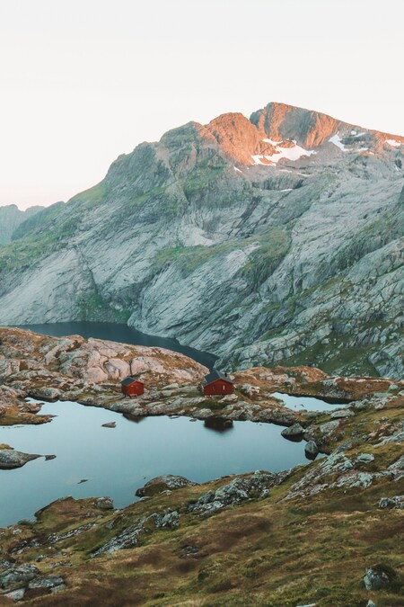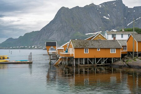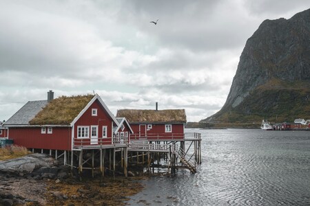 Лофотены отделяются от остальной Норвегии гигантскими мощными скалами. Это архипелаг населением всего около 24 тысяч человек. Яркие красные домики на сваях рассыпались у подножья скал и создают собой городской массив.
