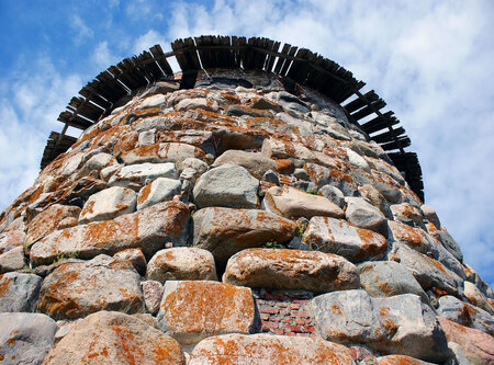 Сначала постройки на острове были деревянные, затем стали возводить каменные сооружения из местных материалов: массивные стены, высокие башни.