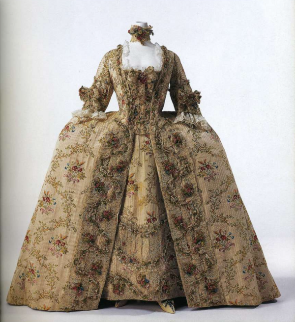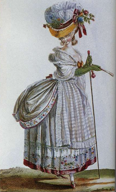 Главной законодательницей моды во Франции в конце XVIII века несомненно была дофина, а позже королева Франции — Мария Антуанетта. Есть легенда, что она никогда не надевала один наряд дважды и тратила баснословные суммы на свой гардероб.