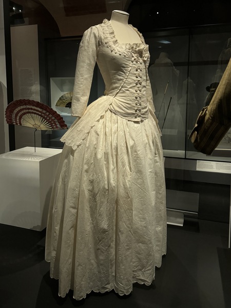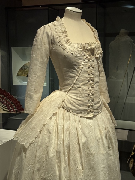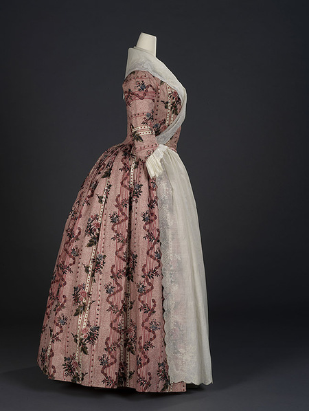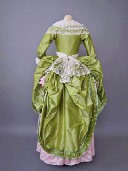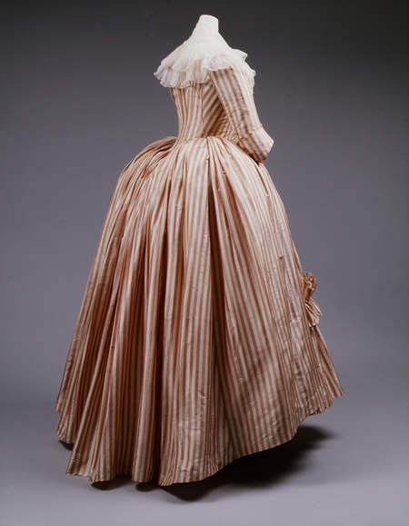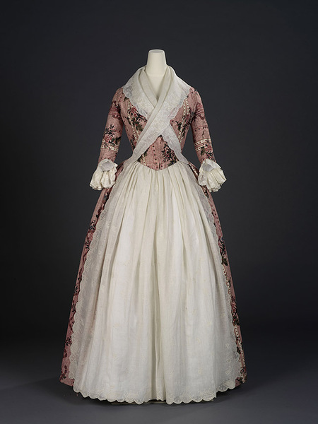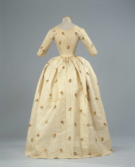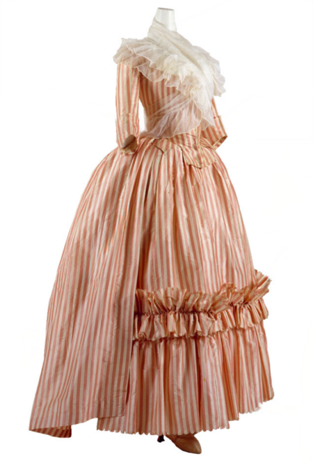 Из нарядов английских помещиков появилось robe à l’anglaise, которое приобрело популярность в 1770-х годах. В противовес французскому платью, оно было более простым и комфортным типом платья. Связано это с отдельно сшитыми лифом и юбкой. Также у платья не было вертикальных складок на спине, а благодаря драпированной сзади ткани у платья был приталенный силуэт.