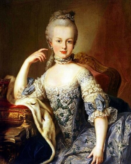 Мария Антуанетта вышла замуж за будущего короля Франции Людовика XVI в 1770 году, когда ей было всего 14 лет. Веселая и озорная девушка предавалась праздности и беспечности на бесконечных балах и увеселениях, попирая чопорный этикет светского общества и создавая почву для сплетен и интриг при дворе. Её страстями были азартные игры и, конечно, мода. Она успела стать матерью 4 детей, но, к сожалению, трое из них скончались в совсем маленьком возрасте. С началом в 1789 году Великой Французской революции Мария-Антуанетта приложила максимум усилий для спасения монархии. В отличии от своего мужа, который «сложил руки» и впал в депрессию перед лицом опасности, она из заточения писала тайные письма европейским правителям с призывами спасти Францию, то есть ввести войска и подавить бунтовщиков. В результате её жизнь окончилась на гильотине.