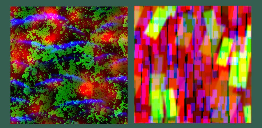 Для создания карт шумов я использую Substance Designer. Нодовая система этого ПО отлично подходит для того, чтобы генерировать различные карты при помощи нескольких манипуляций и кнопок. Я создаю достаточно простые, но абсолютно разные карты, для которых не нужно подробно изучать программу. Основные ноды, которые я использую: Blend, Blur HQ, Slope, Histogram, Mosaic Grayscale, Flood Fill, Levels, Shape, Transformation 2D и карты Perlin Noise, Clouds, Crystal, Gaussian Blur и Anisotropic Noise. На каждую карту я трачу примерно 15 минут. Главное, чтобы они были разными по форме и при этом текстурными и стилизованными, например, в виде мазков кисти или точек.