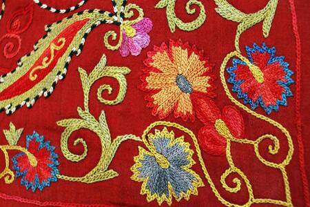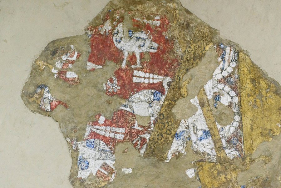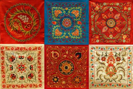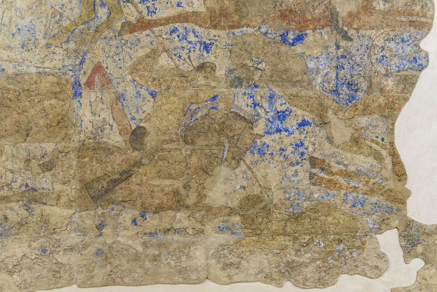 В «Красильщиках» тёплая палитра золотисто-коричневых и синих тонов перекликается с традициями окрашивания тканей Центральной Азии.
