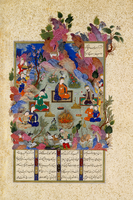В искусстве миниатюры, как известно, наиболее ярко отразились принципы эстетики средневекового Востока, для которого важным было изобразить «не то, что есть, даже не то, что бывает, а то, что должно быть». Поэтому изображение в ней исполняет совершенно иные функции, чем в европейском искусстве, и не связано с реальностью. Здесь также важна роль этикетности, эстетического идеала, каноничности сюжетов и композиций.