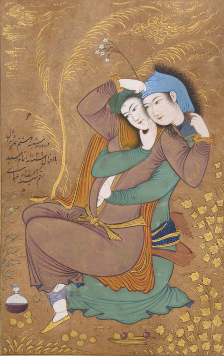 «Композиция этого небольшого полотна построена по принципу житийной иконы с клеймами, живопись вдохновенно цитирует миниатюры средневековых восточных рукописей, а сюжет… Можно сказать, что это не просто свободомыслие, а дерзкий и эйфорический творческий акт, воспевающий (именно так, без кавычек) поэтику той любовной девиации, которая имеет давние традиции в мусульманских странах…» 6