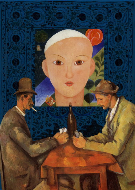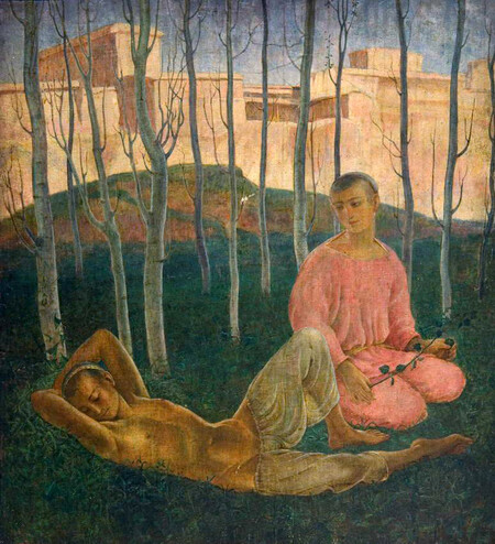 «Так, например, фигура возлежащего юноши в темпере „Весна“ (1923)имеет почти прямое сходство с „Венерами“ Джорджоне и Тициана, но при этом находит аналогии и в сефевидской миниатюре XVII века, где изображения возлежащих женщин и юношей могли быть почти идентичны, отличаясь лишь некоторыми деталями одежды, намекающими на гендерную принадлежность. Заимствуя и видоизменяя композиционные „формулы“, многократно тиражировавшиеся в миниатюрах» 8
