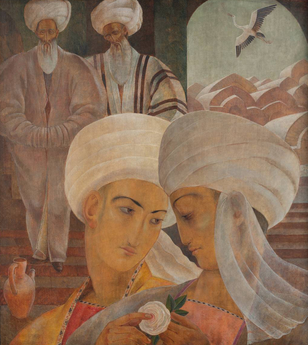 Работа «Жених» с образом прекрасного юноши на грациозном скакуне представляется как аналог искусства классической миниатюры. Те же самые мотивы присутствуют на рисунке «Когда я увидел Самарканд»