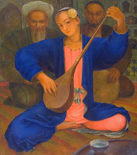 Ахмедова Н. Живопись Центральной Азии ХХ века: традиции, самобытность, диалог. — Ташкент: Академия художеств Узбекистана, Научно-исследовательский институт искусствознания, 2004. — С. 55.
