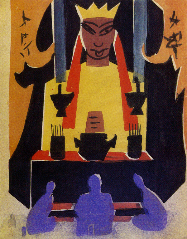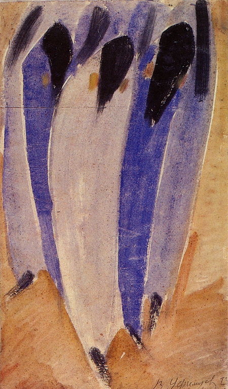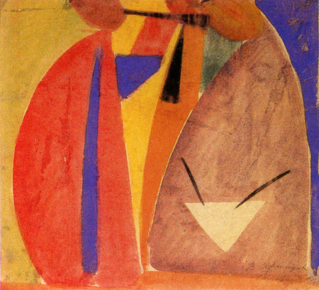 «Живопись Востока главным образом построена на примитиве и на живописно-декоративном начале. Это легло в основу моего творчества. Развертывая работы в плоскости примитива, я пришел к трактовке человека в треугольнике, как предельно простейшей форме»4