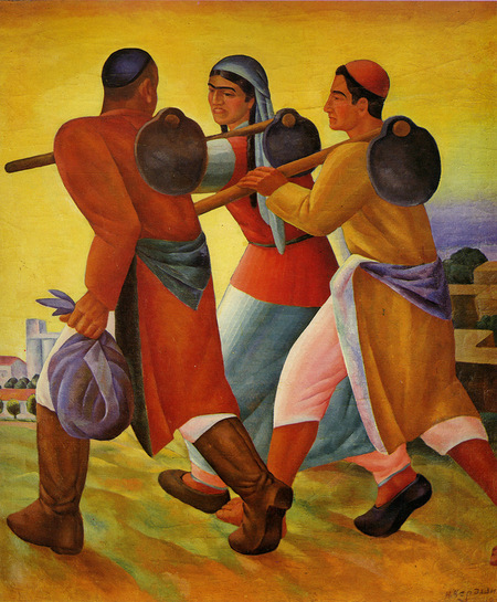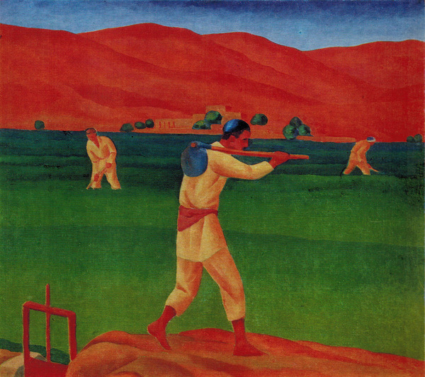 Его персонажи — массивные, атлетически сложенные фигуры — предстают не просто как участники строительства новой жизни, но как символы мощи, стойкости, неутомимого труда. Знаковые работы — «Выход на работу» (1929), «Уборка пшеницы» (1930), «Прокладка водопровода» (1932), «Поливальщик» (1932), «Возвращение жнецов» (нач. 1930-х) — демонстрируют эволюцию его стиля. В этих произведениях прослеживается переход от чисто живописного эксперимента к монументальной эпической выразительности.