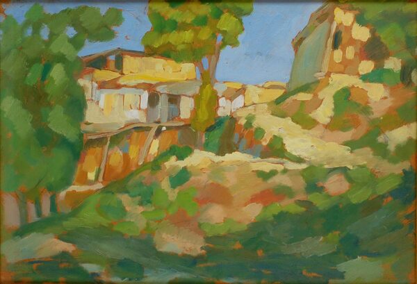Развитие Тансыкбаева шло стремительно — от импрессионистических вариаций он перешел к постимпрессионизму, впитывая европейские художественные традиции. В его пейзажах преобладает плоскостная декоративная манера, а контрастные локальные цвета — красный, синий, зеленый — создают радостную, насыщенную атмосферу. Одновременно художник глубоко изучал народную культуру, что особенно заметно в его акварелях 1930-х годов.