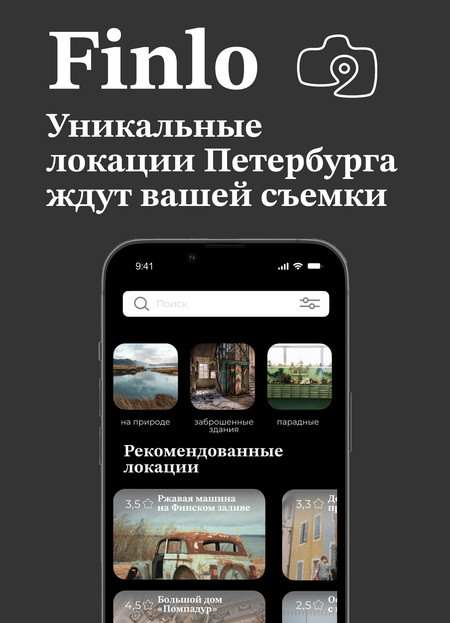 Finlo — приложение по поиску локаций для съемки. Оно содержит в себе большую коллекцию локаций, распределенных по фильтрам. Подборки и рекомендованные, а также заявка на индивидуальный подбор по сценарию помогут найти подходящее место для любого вида съемки. Finlo ускоряет процесс поиска, тем самым радует пользователей новыми интересными локациями