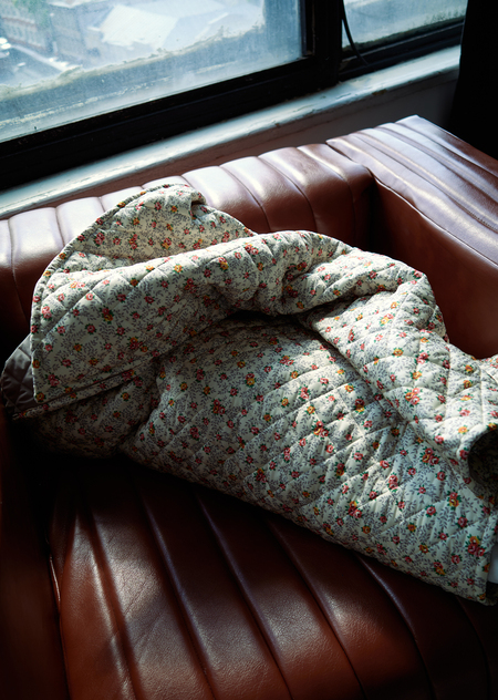 Сумка вдохновлена строками из песни Daydream: она представляет собой стеганное полотно в наивный цветочек, на котором можно отдохнуть. Изделие трансформируется не только в плед, но и может стать частью образа. Фурнитура сумки, кнопки, позволяет закрепить её на теле, как фартук, баску или шарф.