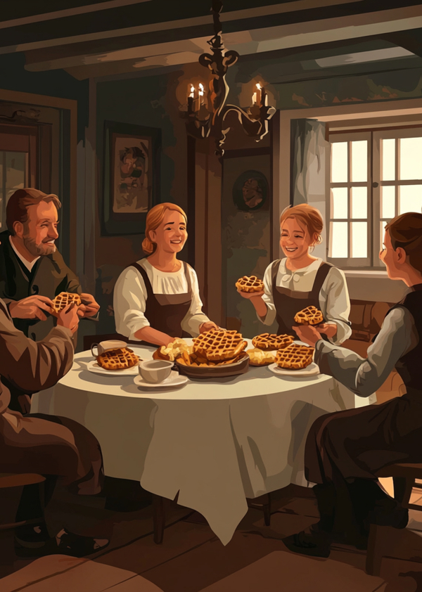 Водитель с трудом добрался до двери дома и постучал. Через мгновение дверь распахнулась, и Михаила пригласили внутрь. Внутри его взору предстала семья, собравшаяся за столом. Они завершали ужин, и на тарелках лежали аппетитные вафли. Глава семьи, Яков, внимательно выслушал рассказ Михаила и помог ему связаться с женой. После телефонного разговора хозяин пригласил водителя за стол. — Интересно, что судьба привела вас сюда именно в тот вечер, когда мы готовили вафли, — сказал Яков, улыбаясь. — А что особенного в ваших вафлях, и как они могут быть связаны с поломкой моей машины? — поинтересовался Михаил. — Я расскажу вам, — сказал глава семьи.