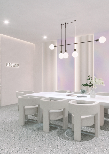 Интерьеры шоурума отображают главные принципы философии компании: чистоту, прозрачность, минимализм.В интерьерах используются основные цвета и элементы фирменного стиля компании: белый как символ чистоты, черный — символ противоположности, а радужные градиенты отражают многогранность и постепенное раскрытие ароматов