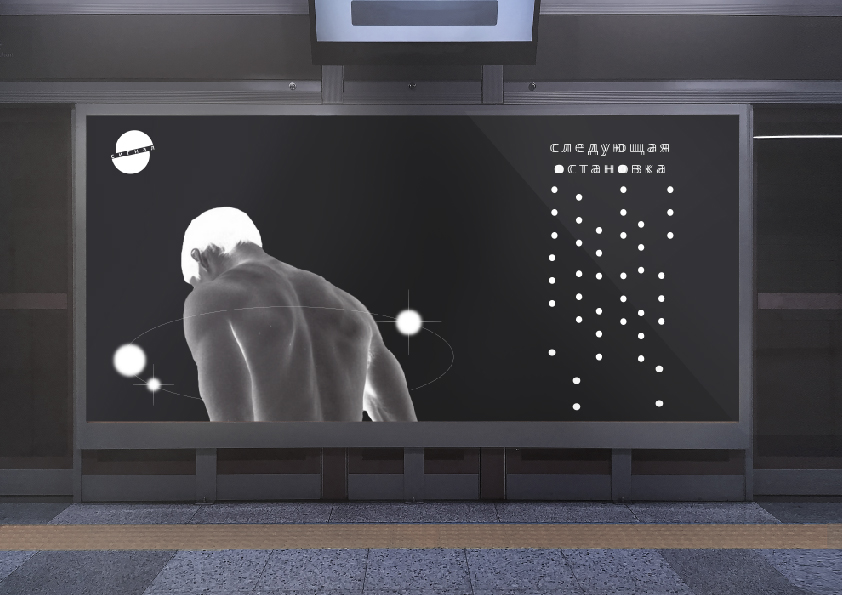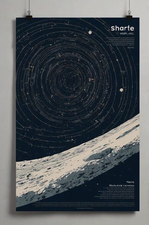 The overall design is clean and sophisticated, using minimalistic elements to evoke a sense of connection to the cosmos and timelessness.