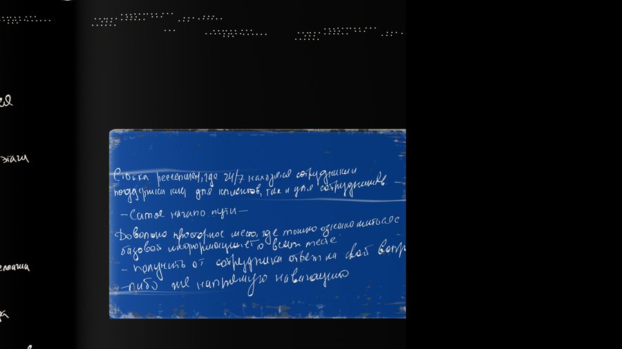 Один из сотрудников совершает обход по всему зданию со своим рабочим справочником, чтобы сделать записи для будущего издания книги об агентстве