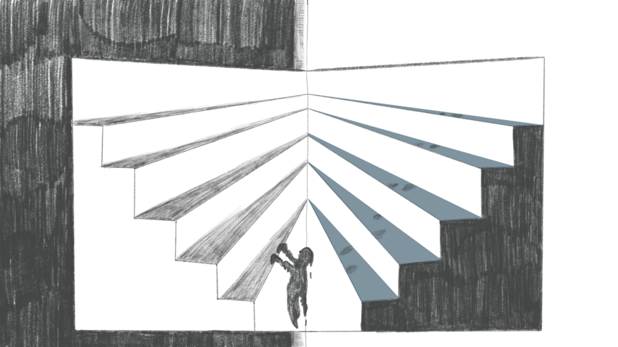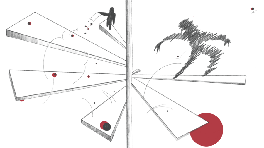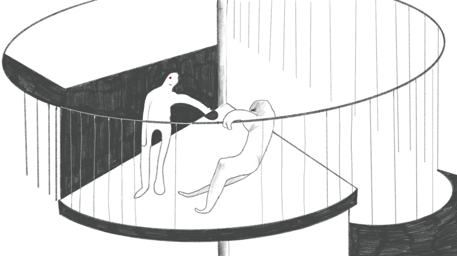 Мнемозина — история о движении в хронотопе жизненного опыта. Человечкая память — это ось, на которую нанизываются наши эмоции, воспоминания и ощущения. Название зина отсылает нас к богине памяти Мнемозине. Каждый изгиб в картинке — фиксация переломного момента и монтаж воспроминаний.