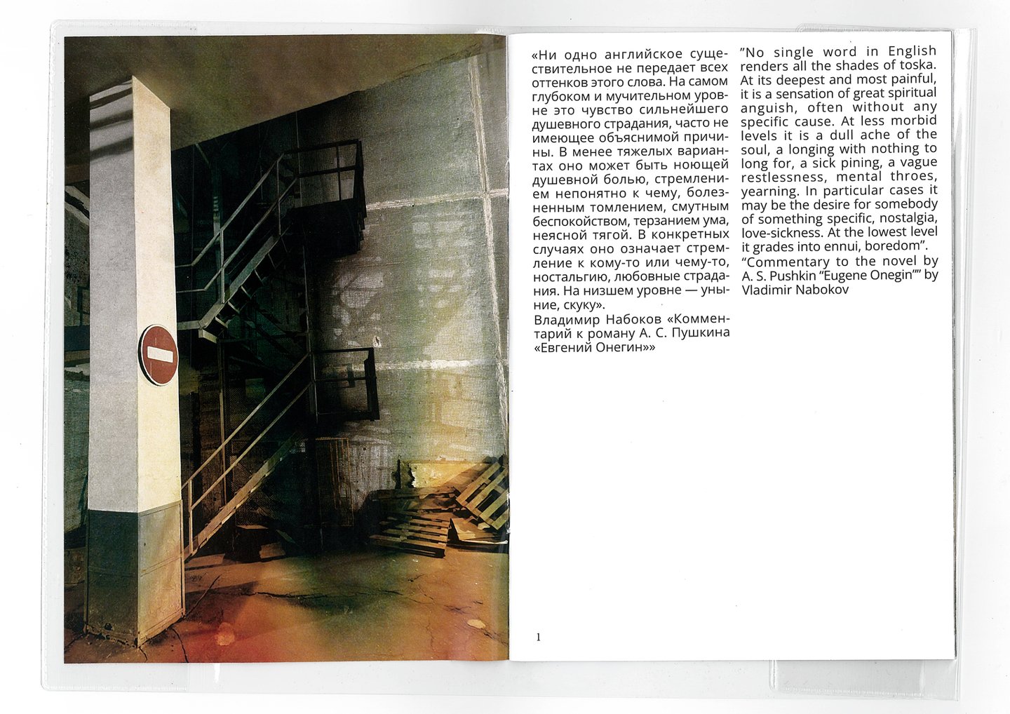 Концепция зина заключается в объяснении феномена русской тоски с точки зрения жителя России с помощью фотографий, заметок, цитат. Цель зина — передать настроение неописуемого словами феномена. Тексты в зине не только на русском, но и на английском языке. Благодаря этому зин не только через фотографии сможет познакомить заинтересованных иностранцев с нашей русской тоской.