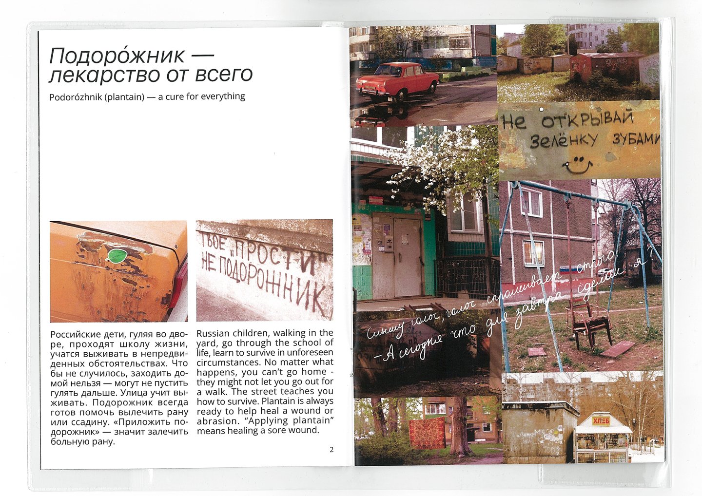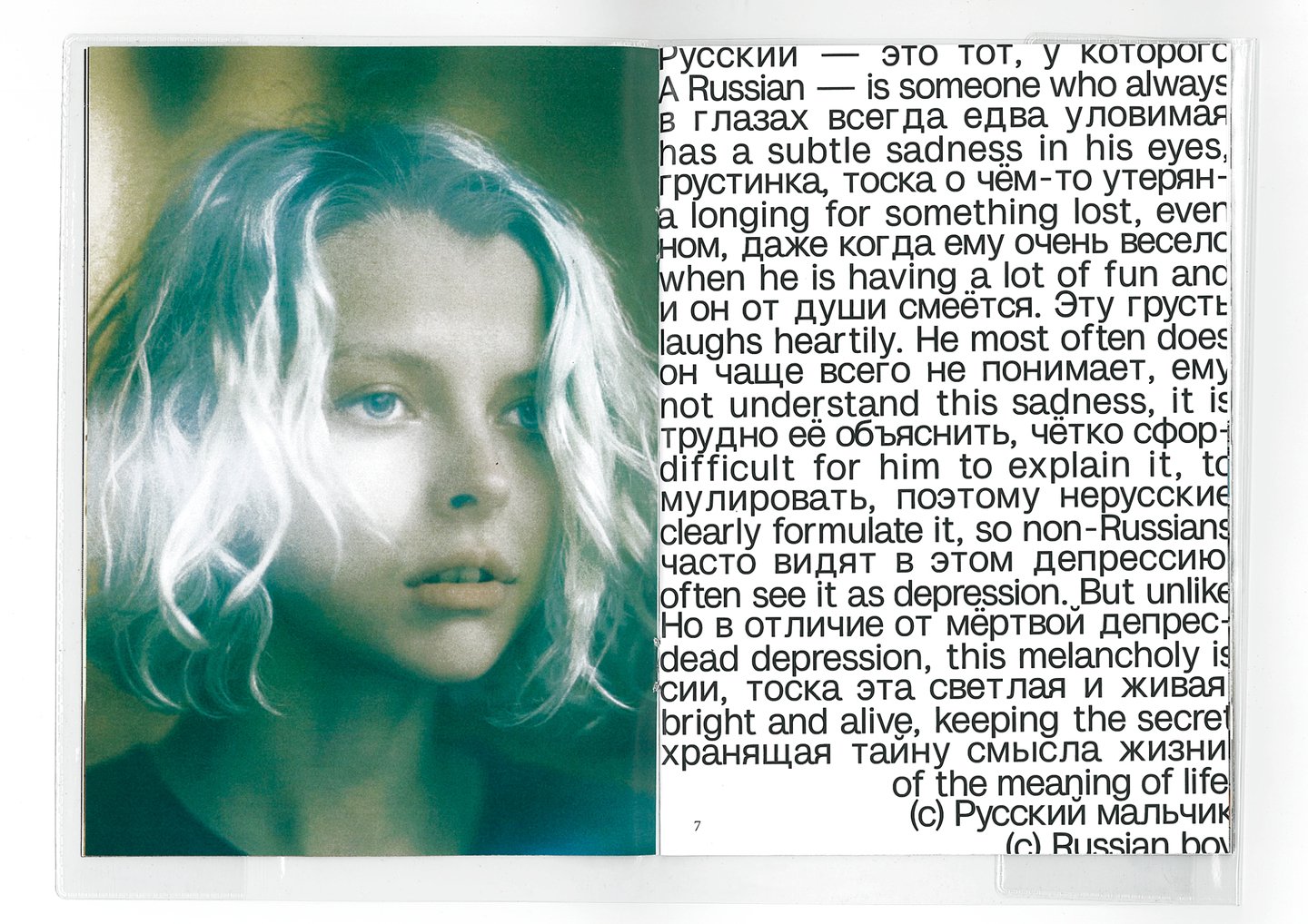 Что такое «Русская тоскá»? Людям, живущим в России, легко понять это чувство, но невозможно описать словами. Для людей из других стран данный феномен не понятен, но, учитывая многие факторы (исследования, статьи, выставки), интересен. Зин рассказывает и показывает что такое «Русская тоскá». Для россиян зин — ностальгия, для иностранцев — возможность прикоснуться и понять нашу тоску.