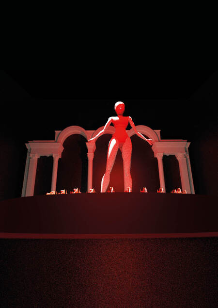 В мэппинге я хочу подчеркнуть задумку самого показа через преимущественно красные, серебристые цвета, добавив элементы огня на сам объект. А также я буду использовать геометричные острые формы, чтобы передать настроение самого показа.