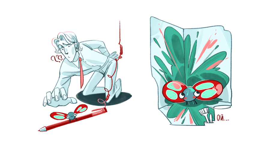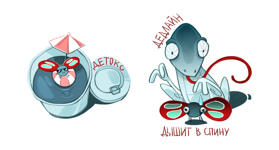 Маскоты «Управления в креативных индустриях» — ответственный Давид, который постоянно на стрессе, наивная и милая Бабочка и коварный Хамелеон. Вместе персонажи работают над проектами и занимаются всякими другими важными штуками, но вот делают они это совершенно по-разному…