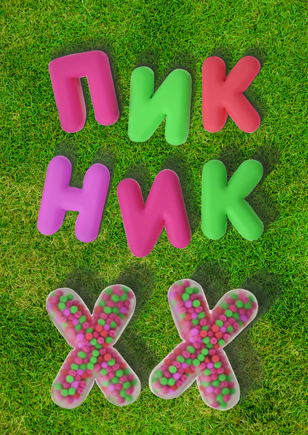 Композиция из пластиковых букв состоит из 8 объектов. Каждая буква слова «ПИКНИК» является пуфом-сиденьем, окрашена в массе в неоновые оттенки, отражающие айдентику фестиваля.