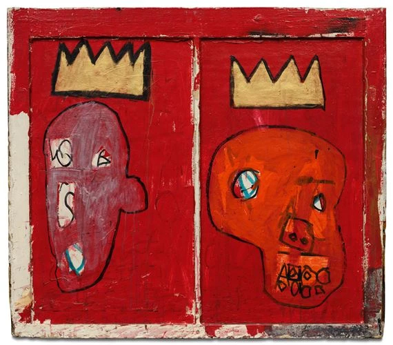 Ещё две картины, в которых я нашла сходство — это «Красные короли» (1981) и «Голова Автопортрет» (1972). Обе являются автопортретом, так как в картине «Красные короли» Баския в глазах спрятал своё имя, при этом видно, что художник подражает плавным линиям Пабло Пикассо, но всё равно делая что-то своё, уникальное.