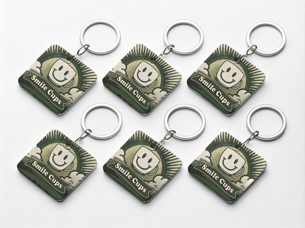 Модель: Recraft Фильтр: Village Realism Промпт: Take a white t-shirt with logo; take 3 square white key chains with logo.