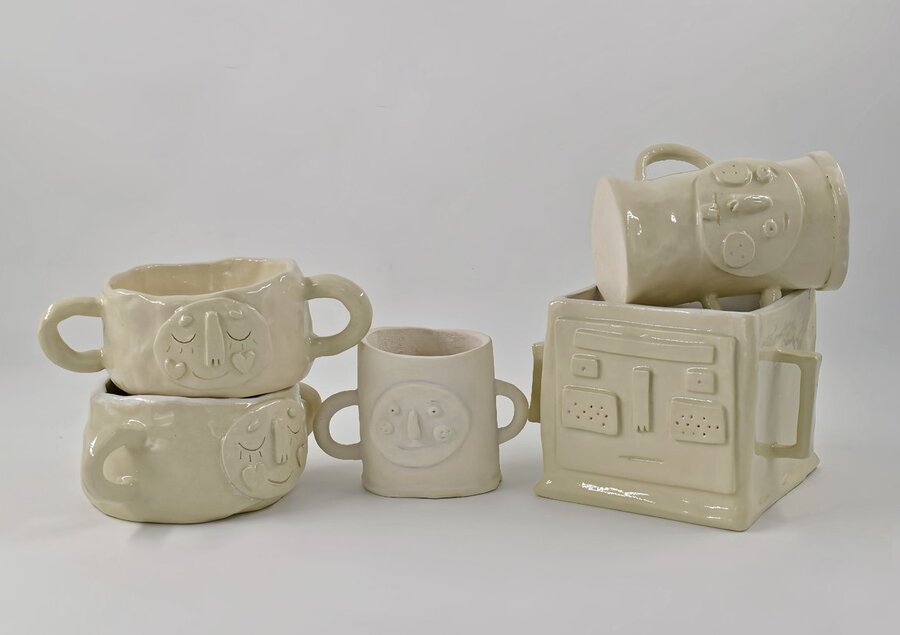 Модель: Recraft Фильтр: Village Realism Все эти изображения были созданы на основе фотографий глиняных изделий из проекта «Изобретение глины | Чашки с лицами», которые были показаны ранее. Промпт: Make similar clay cups with faces.