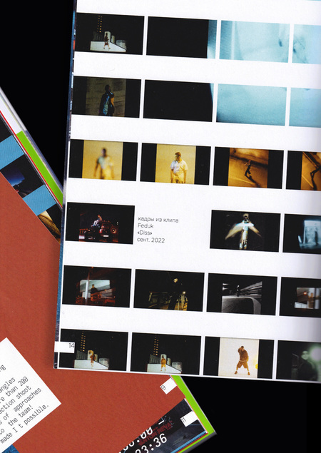 Каталог представляет из себя 4 тетрадки на скобе, объединенные вместе железными кольцами. Каждой тетрадке соответствует определенная сфера творчества Антона Ревы — видео работы, личные исследования, коллаборации и музыкальные обложки.