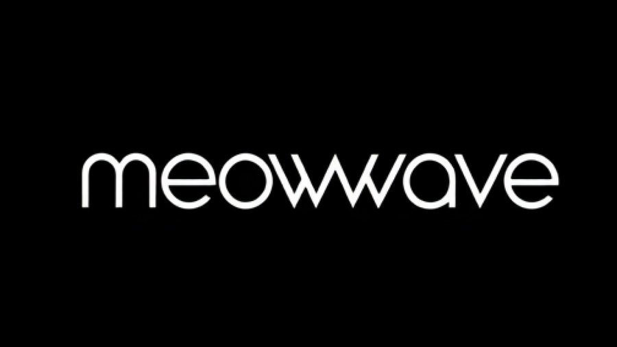 /imagine Logo, minimalist style shape, text «meowave». Logo design for an advertising agency with the word «meowave» in white on a black background, solid color.