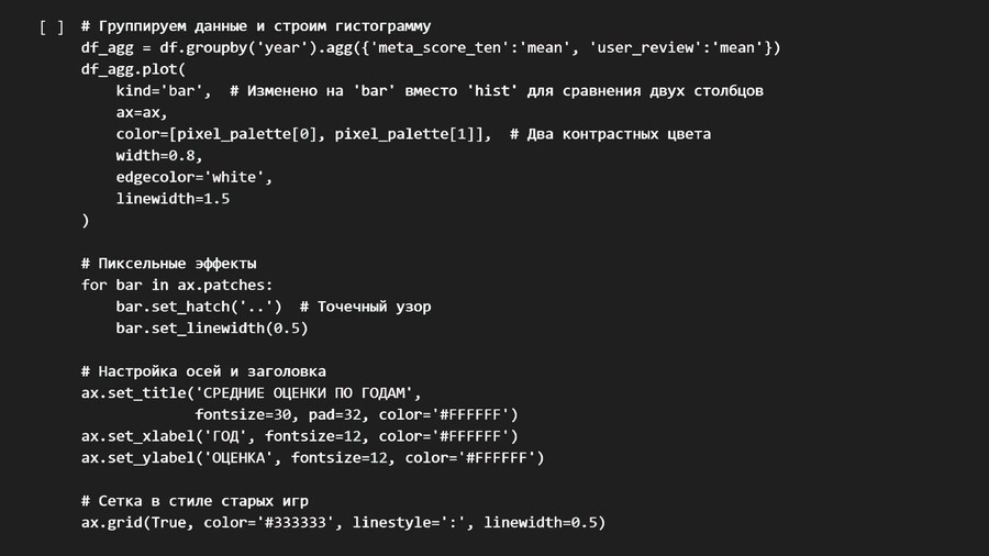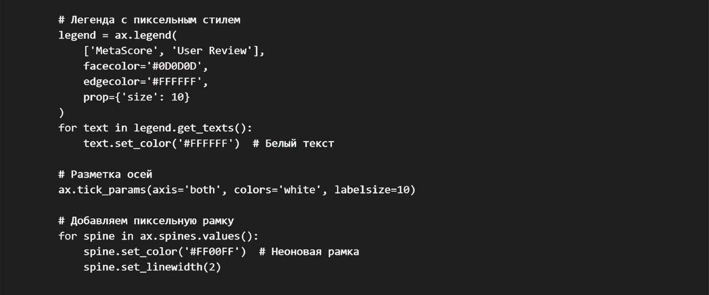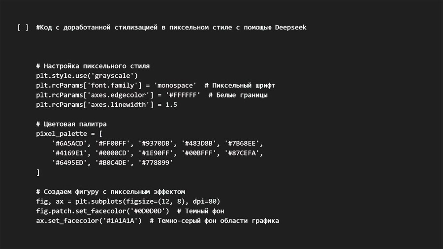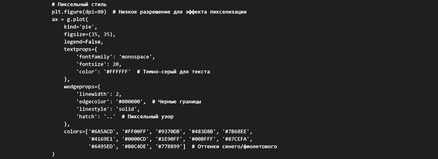 Здесь и в следующих графиках с помощью искуственного интелекта deepseek визуализации, помимо подобранных цветов стилизованы в пиксельный стиль старых игр, а также измененён цвет фона.