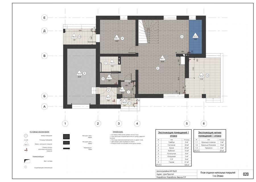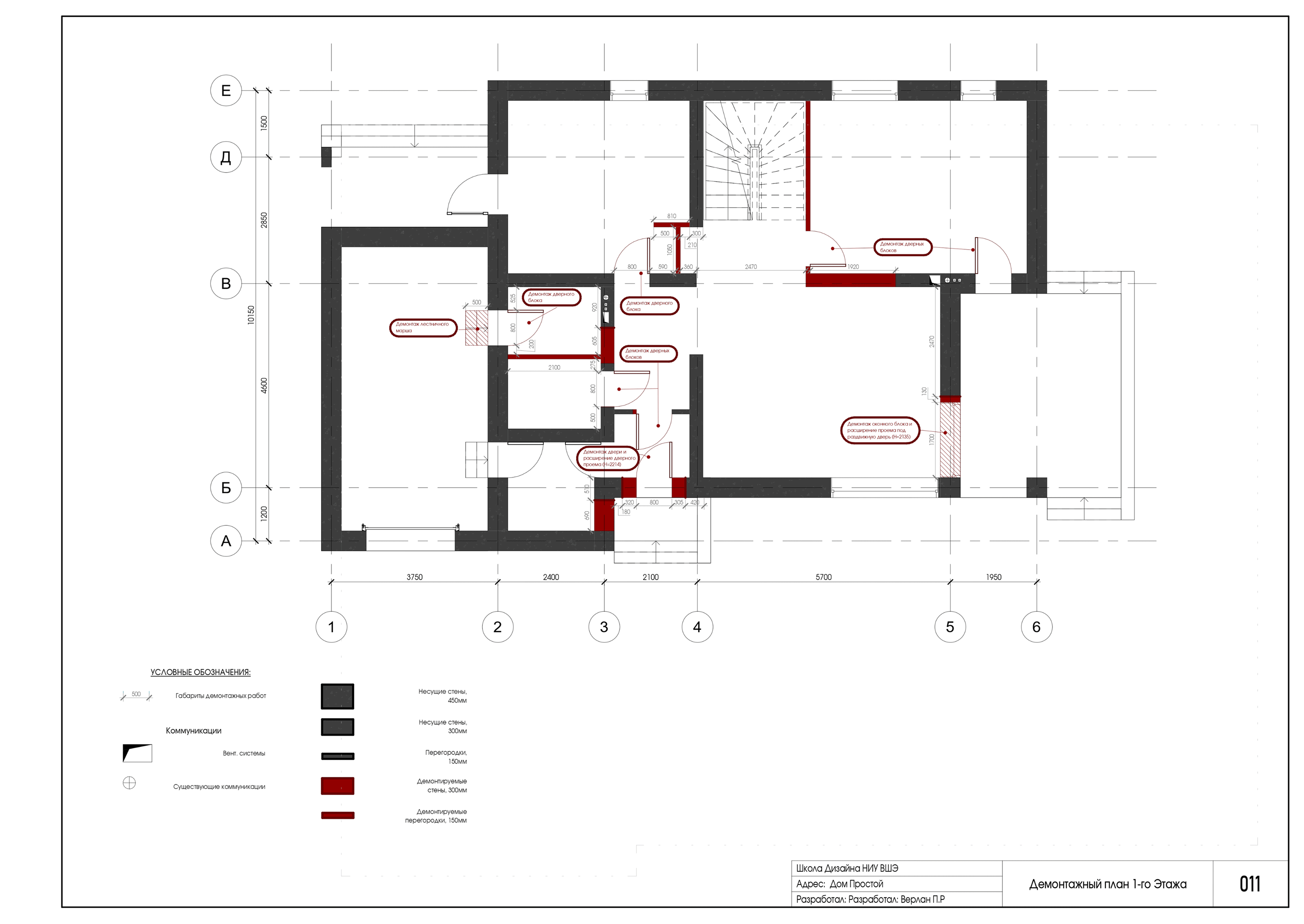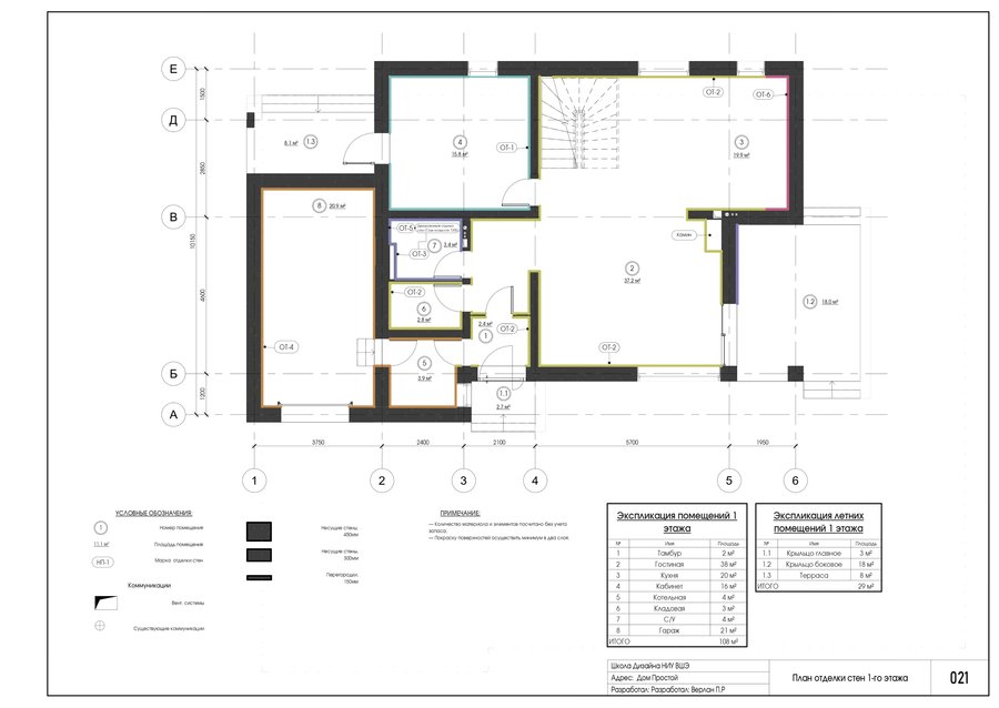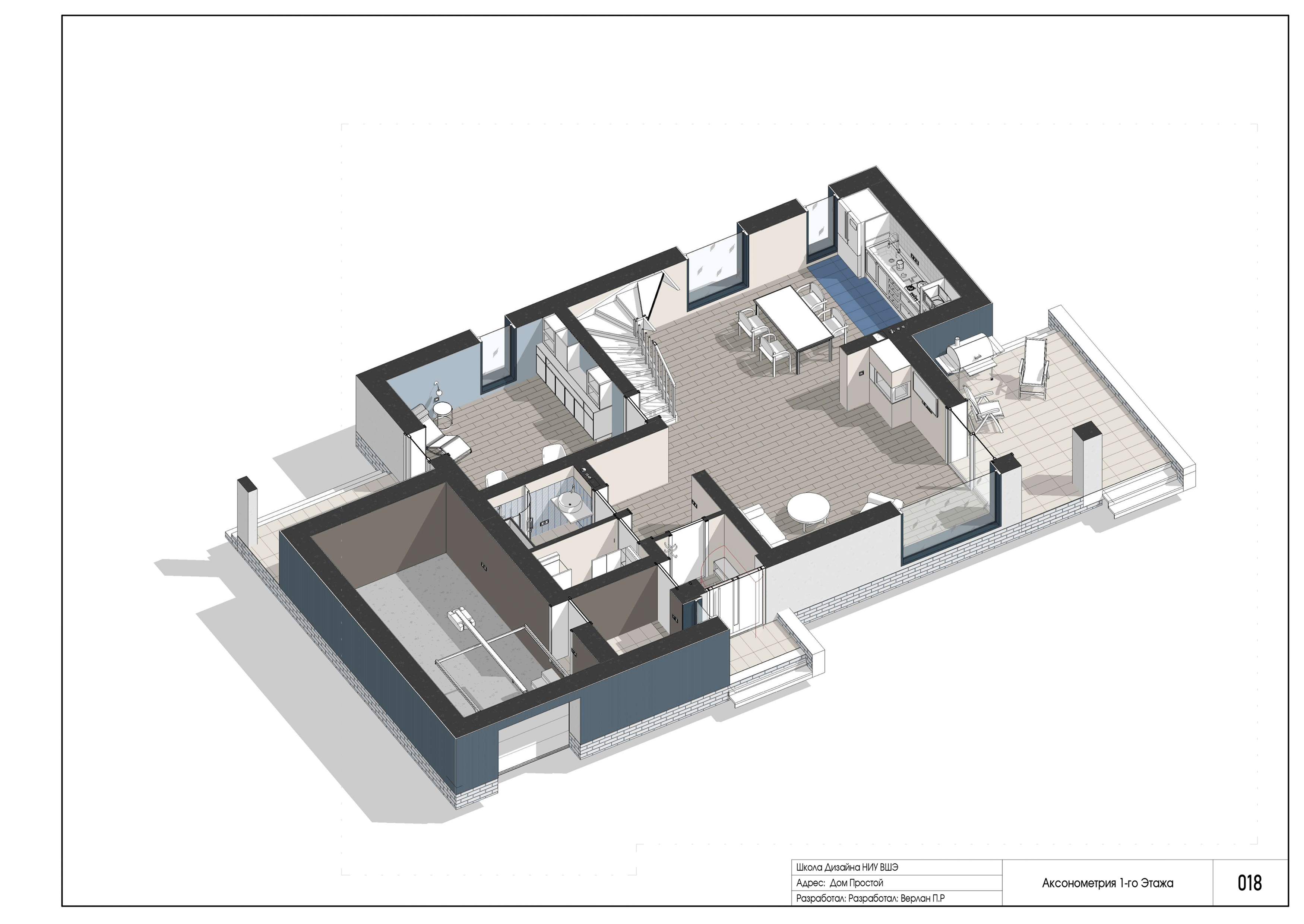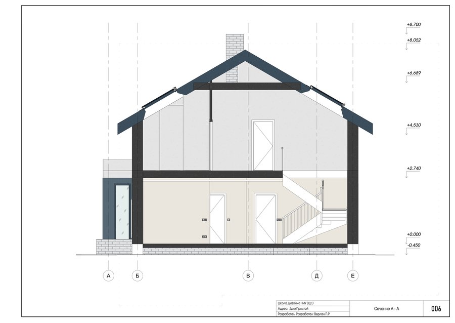 Проект выполнен в программе автоматизированного проектирования Revit. В альбоме представлены фасады, разрез, демонтажные и монтажные работы, расстановка мебели и оборудования, выполнение различных видов отделочных работ, электрика и сантехника, а также развертки