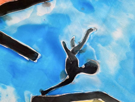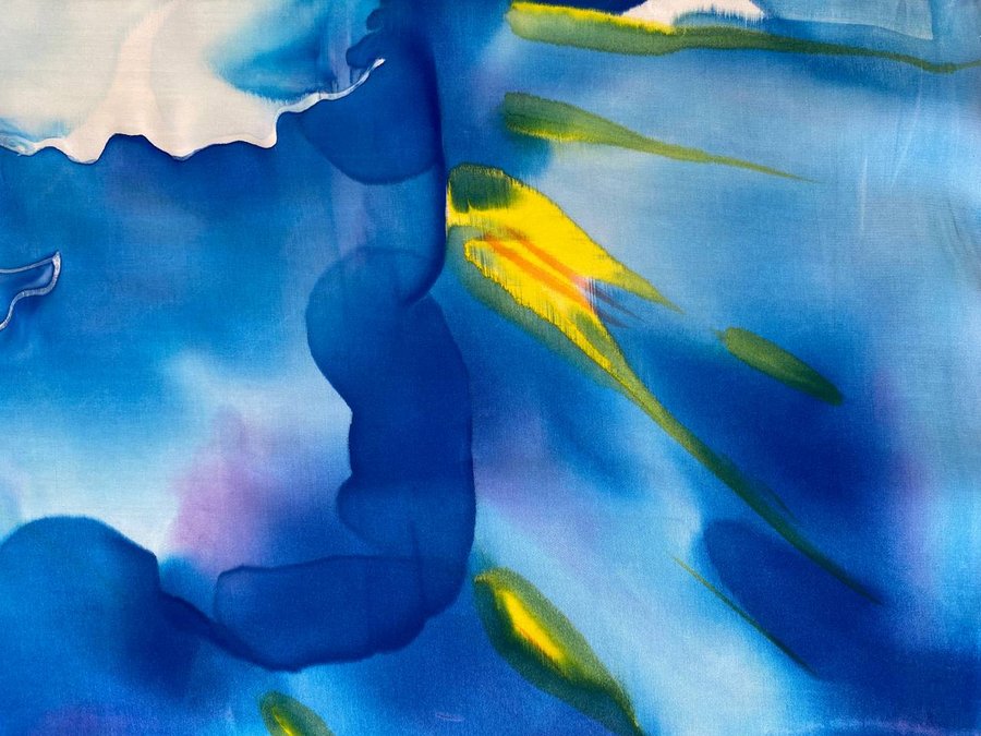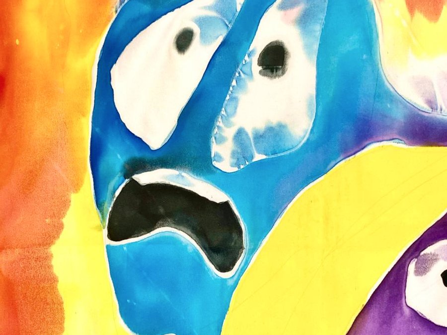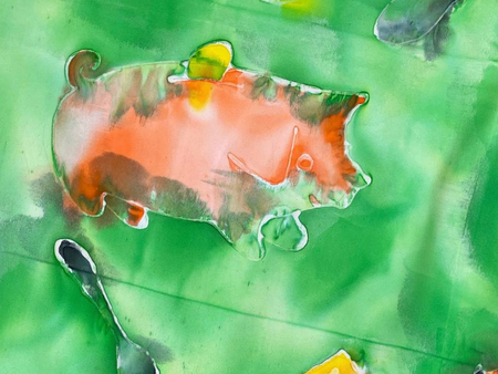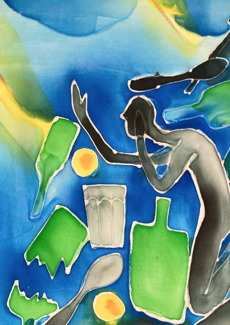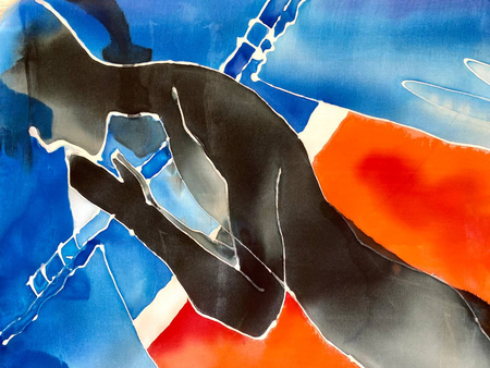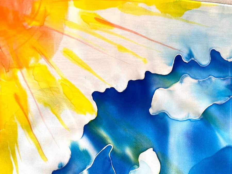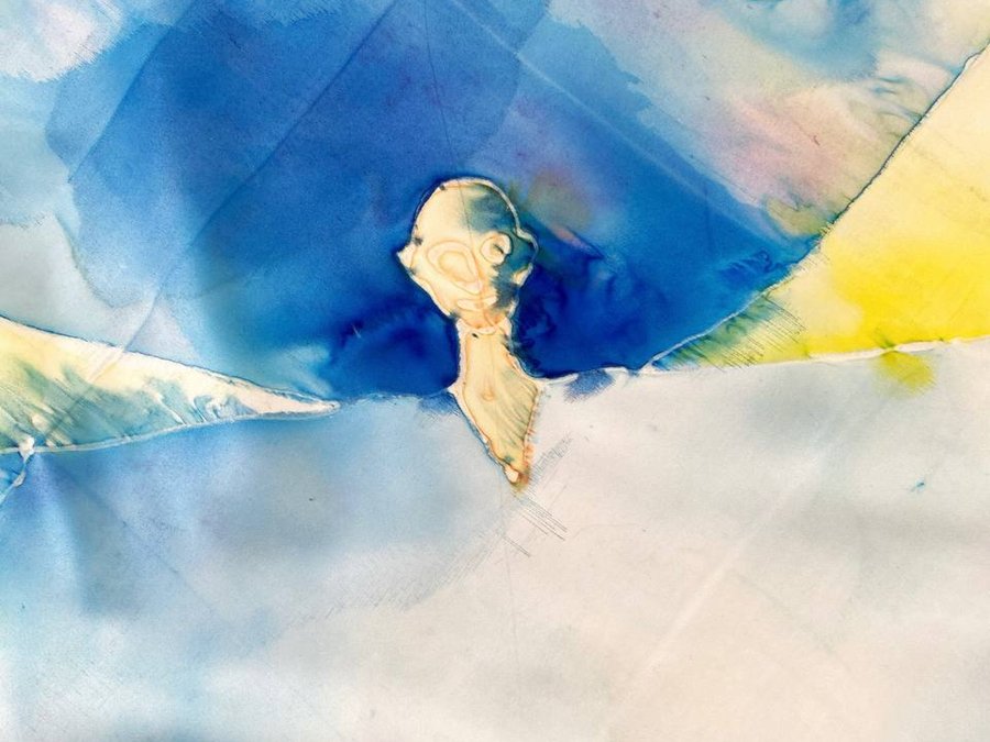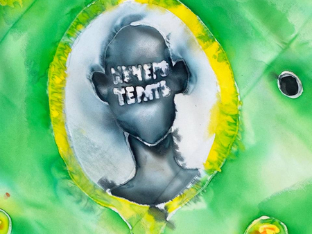 Чтобы передать связь «Гражданской обороны» с народной культурой, я выбрала платки — традиционный, но в то же время личный аксессуар. Техника холодного батика добавляет работе небрежности, в которой сочетается отсутствие контроля. Это очень похоже на звучание песен группы.