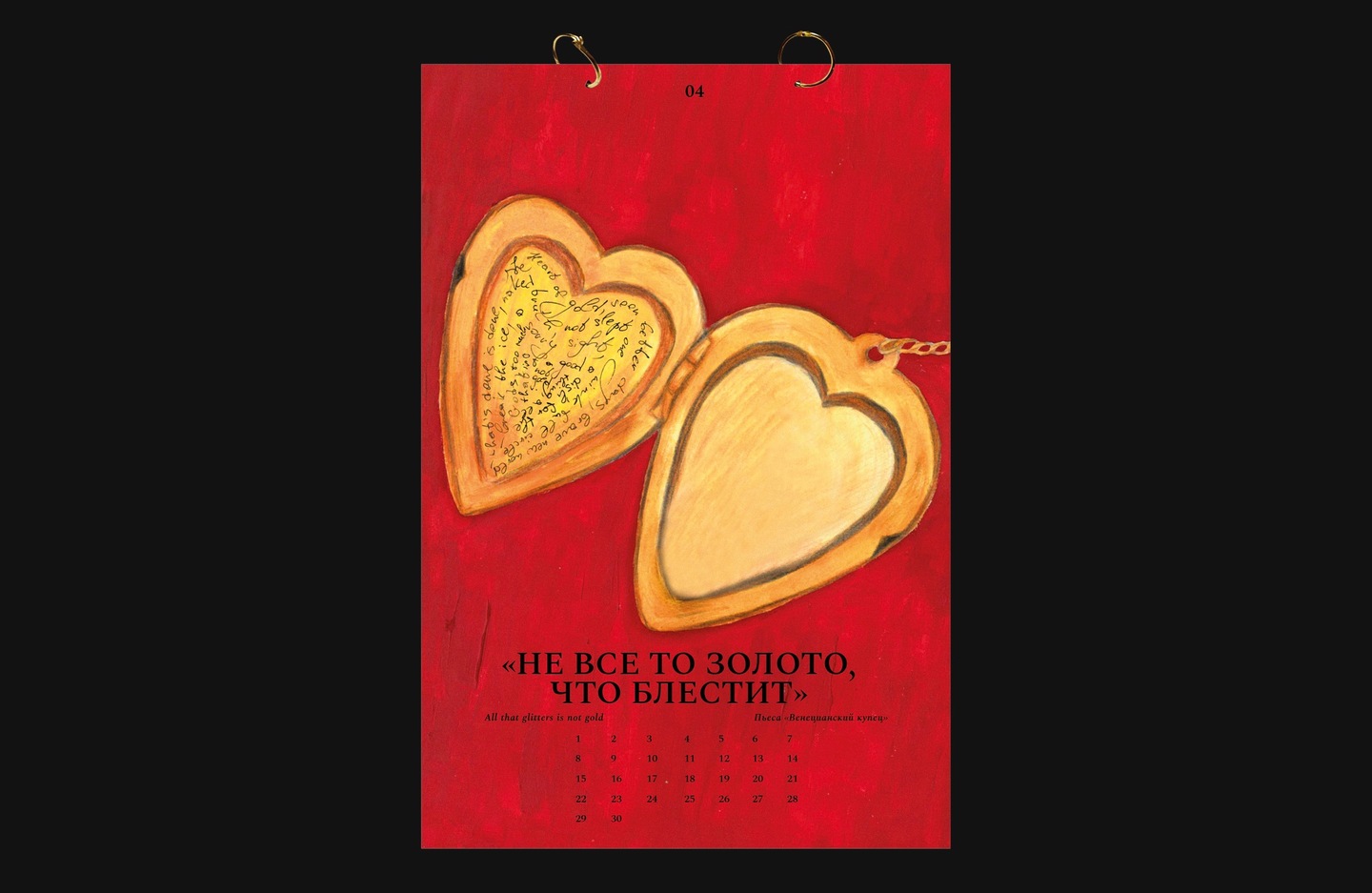 Страницы календаря иллюстрируют 12 фраз, которые мы часто используем в языке, не догадываясь об их связи с пьесами Шекспира.