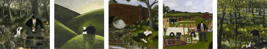 Мне очень близко творчество Гари Банта — оно тёплое, душевное и немного грустное. На его картинах мы почти всегда видим одного и того же героя — пожилого мужчину Берта (это и память об отце художника, и как будто он сам в будущем) и его верную собаку. Они гуляют по тихим деревенским улочкам, сидят у реки или просто отдыхают в саду — такие простые, но удивительно трогательные моменты.