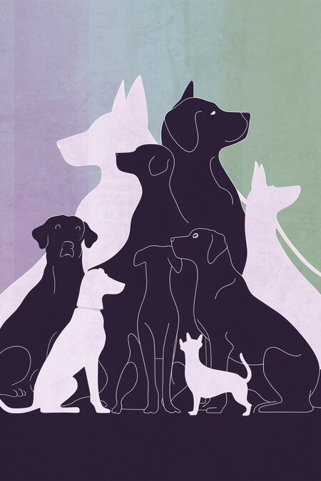 Используемый промпт: «A striking conceptual poster design featuring an artistic silhouette of various dog breeds in harmonious arrangement. The diverse canines are elegantly outlined in a minimalist manner against a soothing backdrop of pastel green, purple, and blue hues. The subtle serene texture of the background accentuates the simplicity of the dogs’ shapes, while the clean design effectively conveys the beauty and diversity of canine companionship. This imaginative piece effortlessly captures the essence of the project, celebrating the bond between humans and their beloved dog friends».