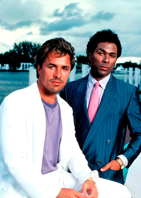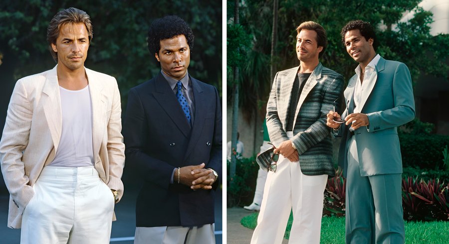 В середине 1980-х гг. на телевидение выходят такие сериалы, как Miami Vice и Magnum, P.I., что привело к расширению мужского гардероба. Смотря на экранных героев, мужчины компоновали пиджаки с футболками, носили гавайские рубашки guayabera, выбирали светлые оттенки в одежде.