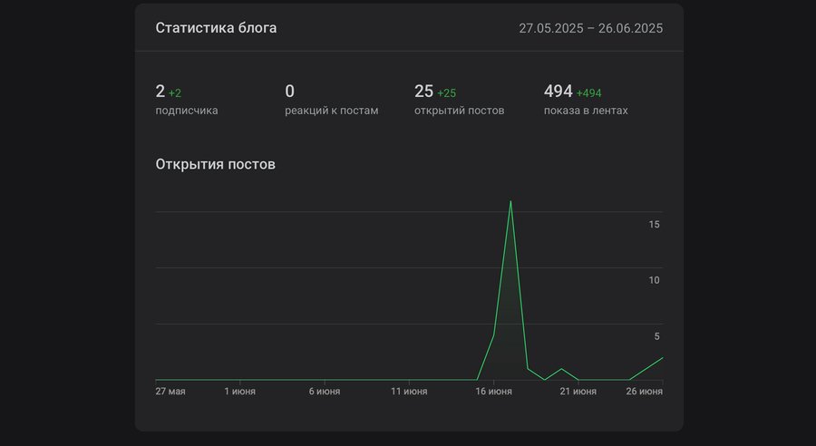 Несмотря на малый охват, люди всё равно остались после прочтения. Это значит, что они нашли в тексте ценность и готовы читать меня дальше. Даже если сейчас аудитория маленькая, это качественный рост — те, кто подписался, скорее всего, реально заинтересованы