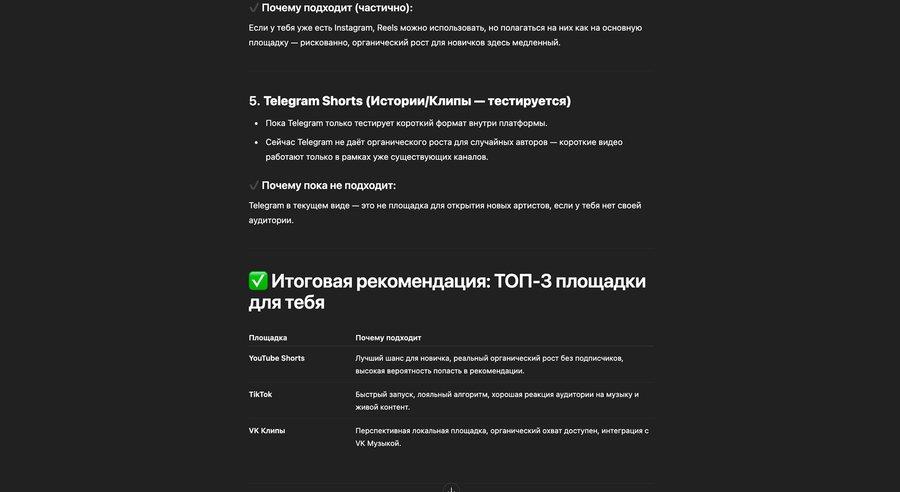 — Переписать статью с акцентом на практические советы или ошибки — VC больше откликается на такие материалы. — Подключить перепосты в телеграм, ВК или другие площадки для увеличения стартового трафика. — Для YouTube Shorts: сделать более динамичный монтаж или подать видео с ярким призывом к действию в первые секунды. — Добавить титры или текст на Shorts. Меньше зрителей смотрят со звуком, особенно в ленте. Минимальные субтитры могут помочь удержать внимание.