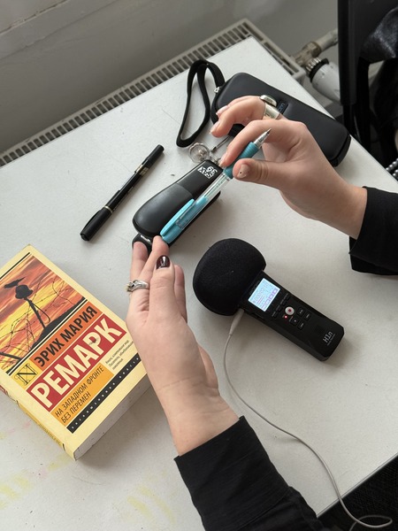 Я записала звуки степлера, скрепок, бумаги, скотча, нескольких шариковых ручек и карандашей. Ещё при создании были использованы другие предметы, чтобы сделать звуки выстрелов более реалистичными и мощными: пакет, спичка, клавиатура компьютера. Также в некоторых звуках присутствует семпл малого барабана, он добавляет пространственности выстрелу. Некоторые звуки были синтезированы в vcv rack.