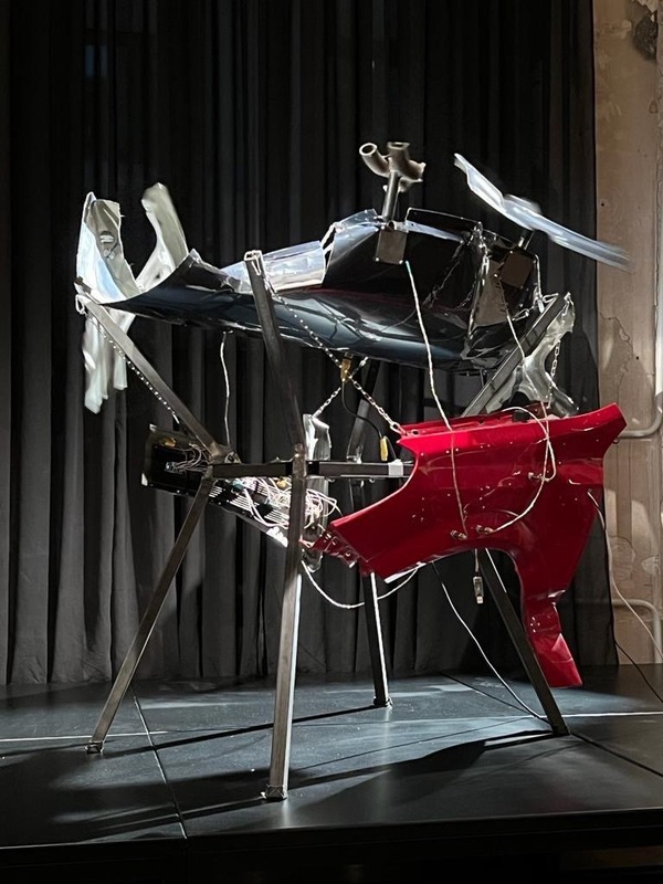 Музыкально-кинетическая инсталляция из деталей битого автомобиля, четырёх электродвигателей и электроники. Двигатели управляются таким образом, чтобы их звучание соответствовало нотам согласно замыслу композитору. Инсталляция подключается к компьютеру по интерфейсу USB-MIDI, что позволяет писать для неё музыку в большинстве известных DAW. В прошивку включены эффекты, такие как glide, vibrato, tremolo и др. Представлена в галерее «Граунд-Солянка», в Артемьев-Центре Московской Консерватории на выставках «Музыка машин» и «Абстракция без границ», на фестивале «Горький + Нижний Новгород 2023». Сделана при поддержке мастерских художественного производства «ГЭС-2: Своды»