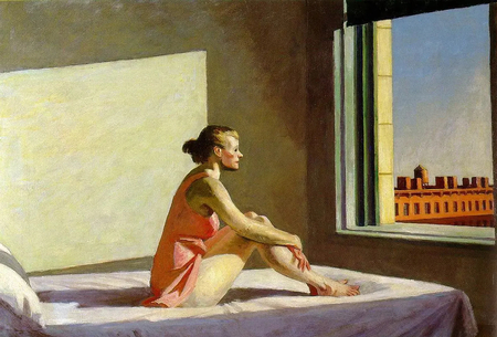 Эдвард Хоппер мастерски использует свет как инструмент для передачи настроения, превращая его в эмоциональный лейтмотив своих картин. В дневных работах свет становится почти физическим персонажем. Он резкий, направленный, часто льётся через окна или отражается от стен, создавая геометрические формы, которые дробят пространство. Эти лучи не согревают, а, наоборот, подчёркивают холодность окружения.