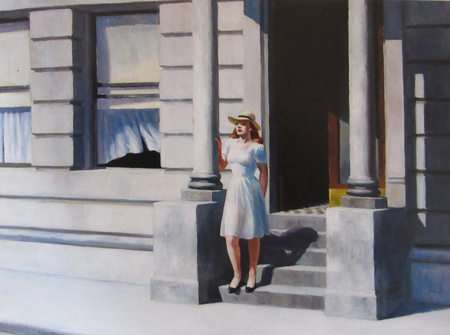 Еще одним важным эпизодом в творческом пути Эдварда Хоппера стало путешествие в Европу. Там он познакомился шедеврами классиков и импрессионистов. Большое влияние на художника оказали картины «Бар в Фоли-Бержер» Эдуарда Мане и «Абсент» Эдгара Дега. «Видимо, уже тогда, в начале творческого пути, его привлекали образы человеческого одиночества в толпе: преимущественно женские типажи, которые затем стали одной из магистральных тем его живописи» [4]. Хоппер взял от импрессионистов внимание к свету и пленэрную манеру письма.