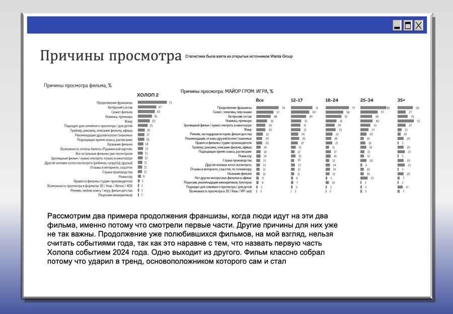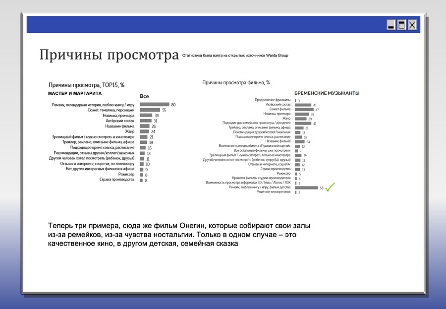 Предпосылок возникновения этого тренда очень много. Все последние события в стране и в мире стали основоположниками развития такого рода интересов у зрителей/слушателей. Данный тренд, в общем и целом, проанализируем на базе кинематографического рынка.