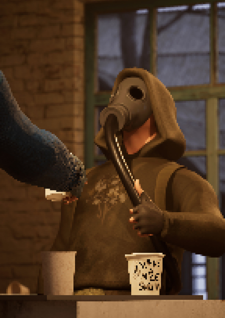Картинка должна быть с постпроцесс эффектом старых фильмов, полу-пикселизации (как в игре lethal company)»
