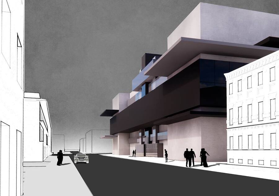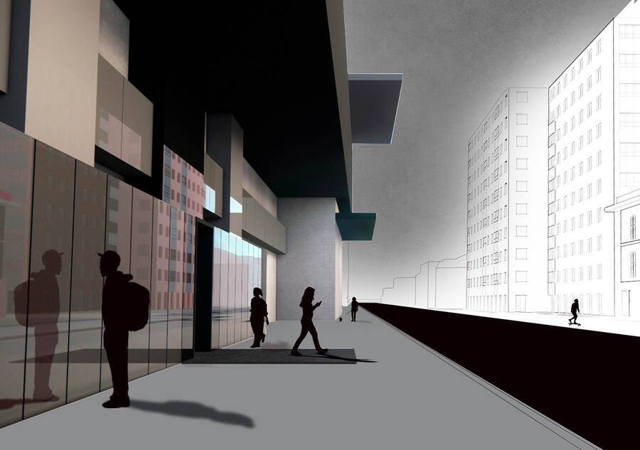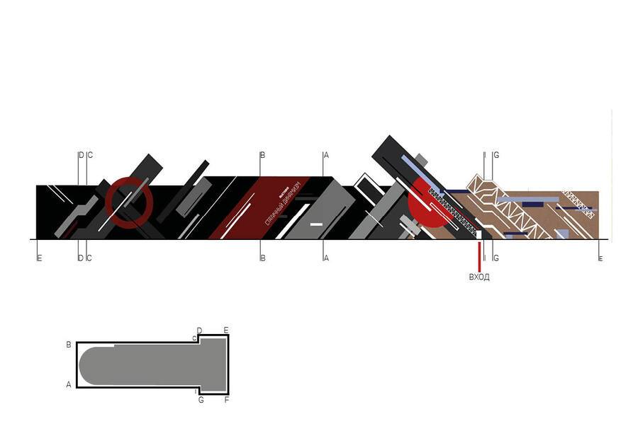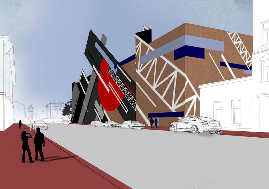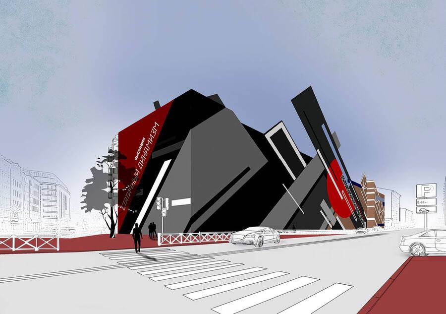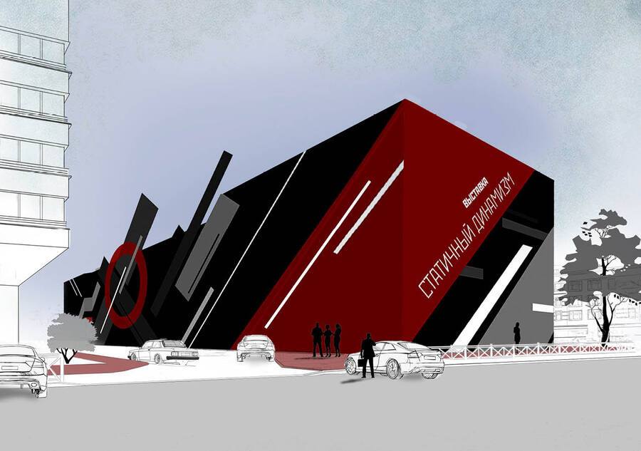 В проекте представлены временные фасады для выставки русского художника-супрематиста Ильи Чашника. На графическом фасаде запечатлено столкновение начального и финального стилей его творчества, в то время как архитектурный фасад отражает приемы, применяемые художником в ряде его работ.